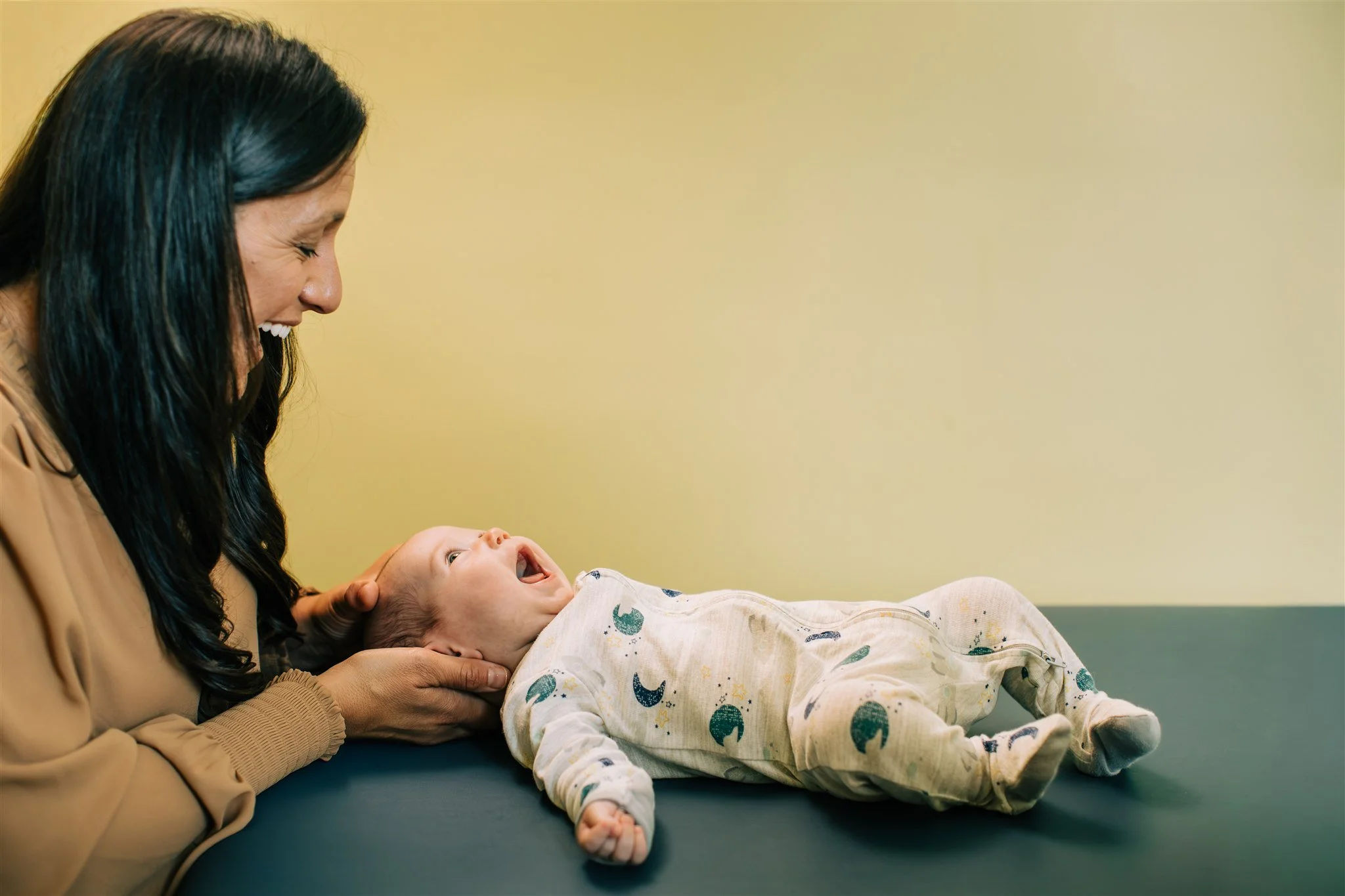 Her ability to truly connect with patients is unmatched. I’ve watched infants who arrived visibly uncomfortable—bodies tight, in obvious pain—melt into ease under her hands. I’ve seen babies’ head shapes shift towards optimal shape, neck engagement improve, and muscular activation shift toward more functional patterns. The changes are not just clinically significant; they are meaningful for the families who finally feel hopeful after long, stressful journeys.